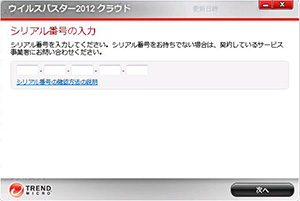 場合、ご購入いただいたシリアル番号が自動で入力されています。